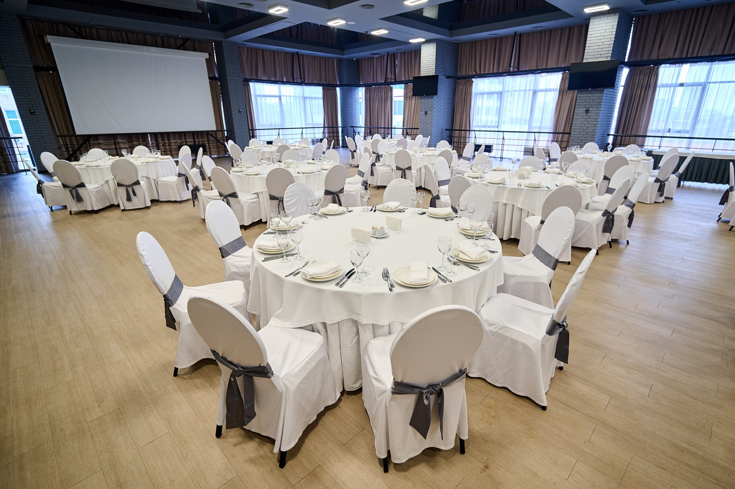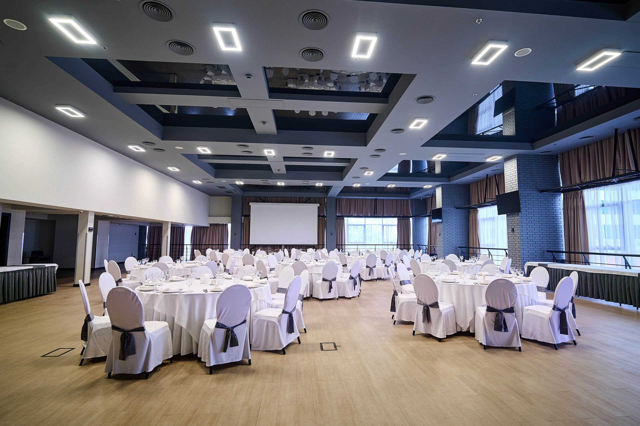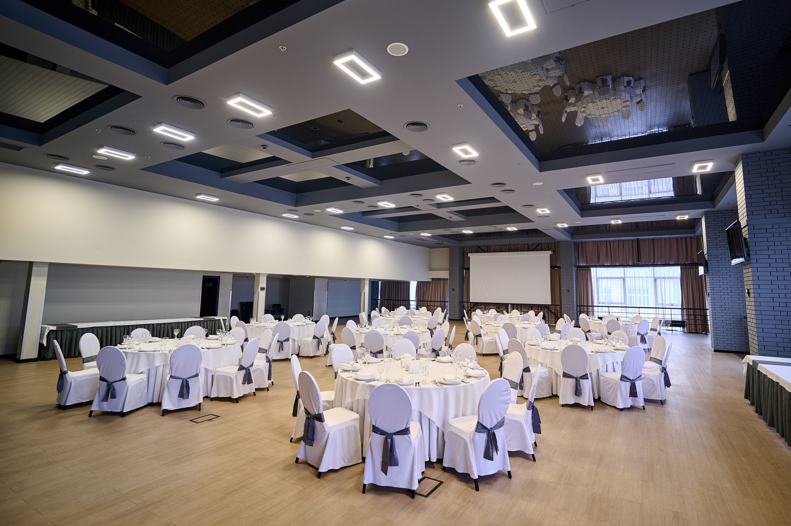 Наповнене світлом приміщення з панорамними вікнами. Він ідеальний для проведення свят до 350 учасників у фуршетному форматі і до 150 - у разі банкетного розсадження. Будь-яке розміщення гостей залишає достатньо місця для сцени і активних дій.